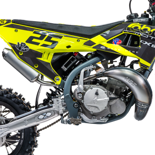 El motor Cobra CX65 es un motor de 2 tiempos de 65 cc y alto rendimiento, diseñado para la moto de motocross Cobra de 65 cc. Incorpora el innovador sistema de válvula electrónica de potencia “Fang”, que optimiza la entrega de potencia en varios rangos de revoluciones para una mayor aceleración y velocidad. Esta avanzada tecnología elimina la necesidad de ajustes manuales y permite a los jóvenes pilotos centrarse en sus habilidades, manteniendo el rendimiento en la pista.